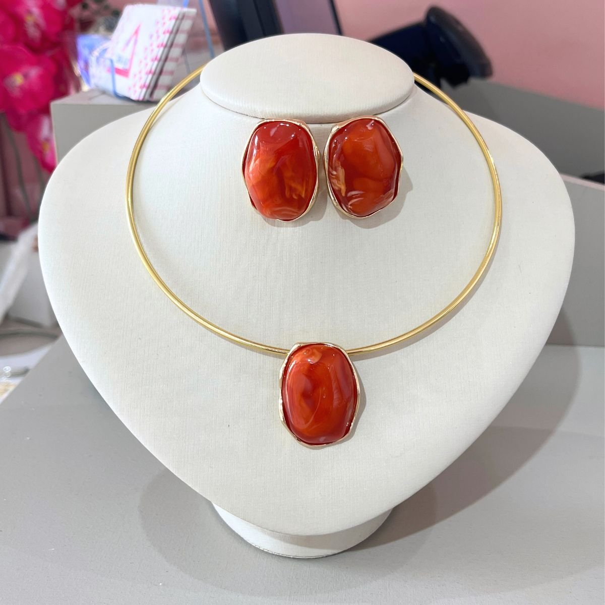 CONJUNTO DOURADO DE ARO COM PEDRA LARANJA : 005435 / : 1g Facebook X Pinterest WhatsApp : - + : OK × ×